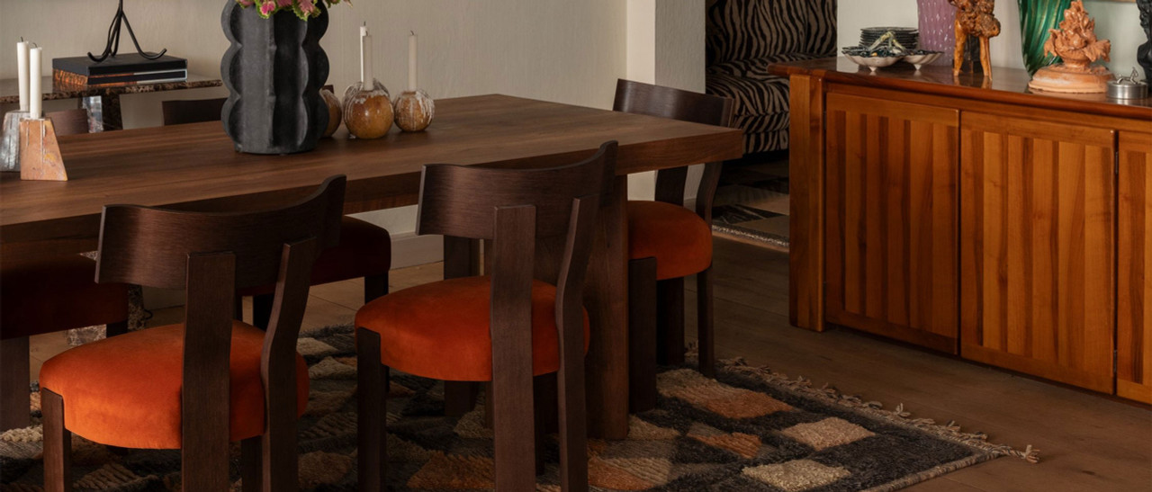 The Alba Chair by Dusty Deco brings bold proportions and soft tactility together in one beautifully balanced design. Chunky yet refined, it plays with contrast in all the right ways. Angular wooden legs ground the silhouette with a sense of structure while the curved backrest softens the overall form. The result feels architectural but never rigid. It’s a dining chair that holds its own visually while still inviting you to settle in. The upholstered seat adds a layer of everyday luxury. Whether finished in textured boucle or plush velvet, the tactile surface brings warmth, depth, and that coveted cozy feel. Developed in collaboration with Bross, this chair delivers modern Scandinavian design with a slightly eclectic edge.
