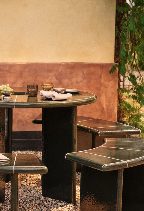 Curves that bring people together, the Deya Curved Bench by ferm LIVING rethinks seating with a sculptural form designed for connection and flexibility. Its gentle curve creates a natural sense of intimacy, whether used alone or paired with multiple benches to form flowing arrangements or even a full circle. It’s seating that adapts to the moment, from quiet mornings to lively gatherings. Crafted from durable fiber concrete, the bench balances strength with a refined, modern finish. The deep green tone adds richness and depth, blending beautifully with both natural outdoor settings and contemporary interiors. Designed for both indoor and outdoor use, this modern bench transitions effortlessly between spaces. Style it around a dining table, along a wall, or as a standalone sculptural piece.