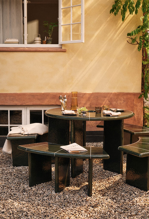 A table designed for gathering, lingering, and everything in between. The Deya Dining Table by ferm LIVING brings sculptural presence and everyday function into perfect balance. The round silhouette naturally draws people in, creating a more intimate dining experience where conversation flows easily. Whether indoors or out, it becomes the center of attention without trying too hard. A central opening allows for a parasol, making it just as practical for sunny outdoor meals as it is for indoor dining moments. Crafted from durable fiber concrete, the table offers strength and stability while maintaining a refined, modern look. Its bold, architectural form gives it that statement-making edge, while the neutral material palette keeps it versatile across spaces.
