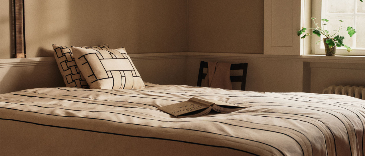 The Lattice Offset Cushion by ferm LIVING brings structure, depth, and a tactile edge to modern interiors. Cotton tapes in a twill weave create a subtle lattice effect that feels graphic yet understated. It’s a layered look that adds interest without overwhelming your space. Woven edging frames the cushion with a refined finish, while the offset pattern gives it a slightly unexpected, design-forward feel. It’s minimal, but with personality. A feather and down filling delivers a soft, plush feel that makes it perfect for lounging, layering, or styling across sofas and beds.