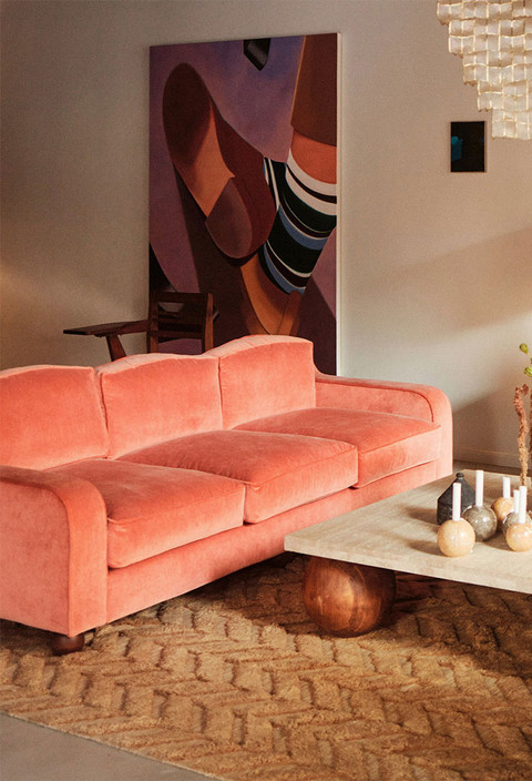 The Lola Sofa by Dusty Deco brings a playful yet polished energy to modern living rooms. Designed in collaboration with Matthew Williamson, this piece blends expressive pattern, soft structure, and elevated craftsmanship into one unforgettable silhouette. The form is where it begins. Gently rounded lines create a sculptural profile that feels inviting from every angle. It’s plush without being bulky. Tailored without feeling rigid. The kind of modern sofa that looks styled even when it’s lived in.