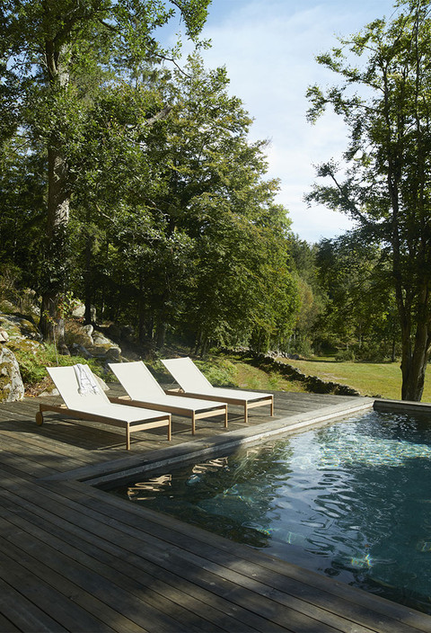 Sunlight deserves a proper stage. The Pelagus Sunbed by Fritz Hansen delivers refined relaxation with a distinctly Scandinavian attitude. Designed in collaboration with Stockholm-based Note Design Studio, this sunbed balances contemporary elegance with everyday versatility. The solid teak frame feels expressive yet restrained, grounding the design in timeless Nordic craftsmanship. Discreet wooden wheels add a classic touch while making it easy to reposition and follow the sun across terrace or poolside. The weatherproof sling textile seat introduces a modern lightness, offering breathable support that remains comfortable through long afternoons outdoors. Adjustable to five positions, the sunbed transitions effortlessly from fully reclined to upright lounging. For additional comfort and customization, up to two teak armrests (sold separately) can be added.