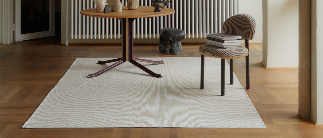 Balanced lines and natural texture give the Rapalline Rug by Linie Design its quietly refined character. Inspired by the calm precision of Scandinavian interiors, the design uses clean stripes and soft neutral tones to create a surface that feels structured yet relaxed. Symmetrical lines stretch across the rug in a steady rhythm. The pattern feels modern and architectural while maintaining the warmth expected from natural fibers. Subtle tonal variation keeps the look dynamic while still allowing the rug to blend effortlessly into contemporary spaces. Handwoven craftsmanship highlights the beauty of the materials. A durable blend of wool and linen provides both resilience and texture underfoot. The linen warp adds strength and enhances the rug’s natural appeal. Its reversible construction offers flexibility and longevity which makes it ideal for everyday living.