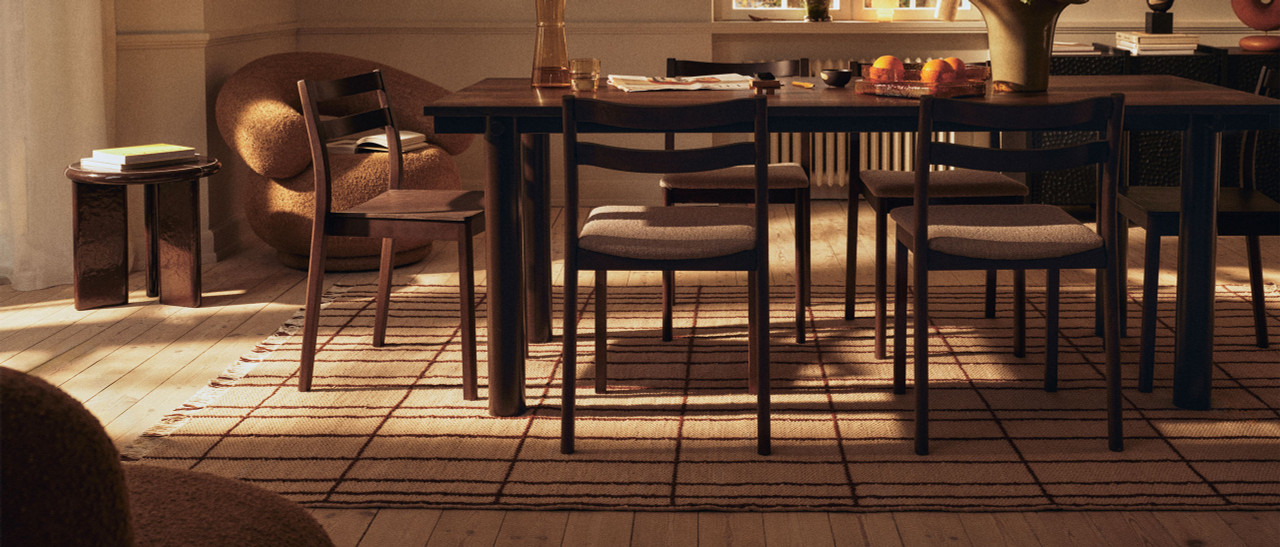 The Sen Rug by ferm LIVING brings a calm, layered foundation to modern interiors. A gentle checked pattern emerges through a slight relief effect, creating depth without overwhelming the space. It’s texture you notice more over time than at first glance. Woven in a flat-weave construction, the rug feels light and natural underfoot while maintaining durability for everyday living. The wool blend adds warmth and softness, while the cotton warp keeps the structure grounded and refined. Finished with delicate fringes, it carries a relaxed, lived-in feel that works beautifully in living rooms, bedrooms, or layered spaces that lean into quiet luxury.
