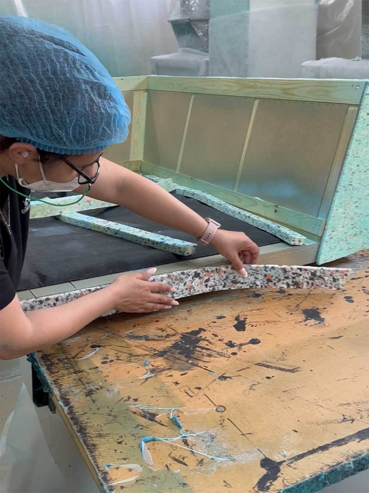 | 3 From there, layers of foam are sculpted and shaped onto each frame, giving life and form to the brand’s unmistakable comfort. |
